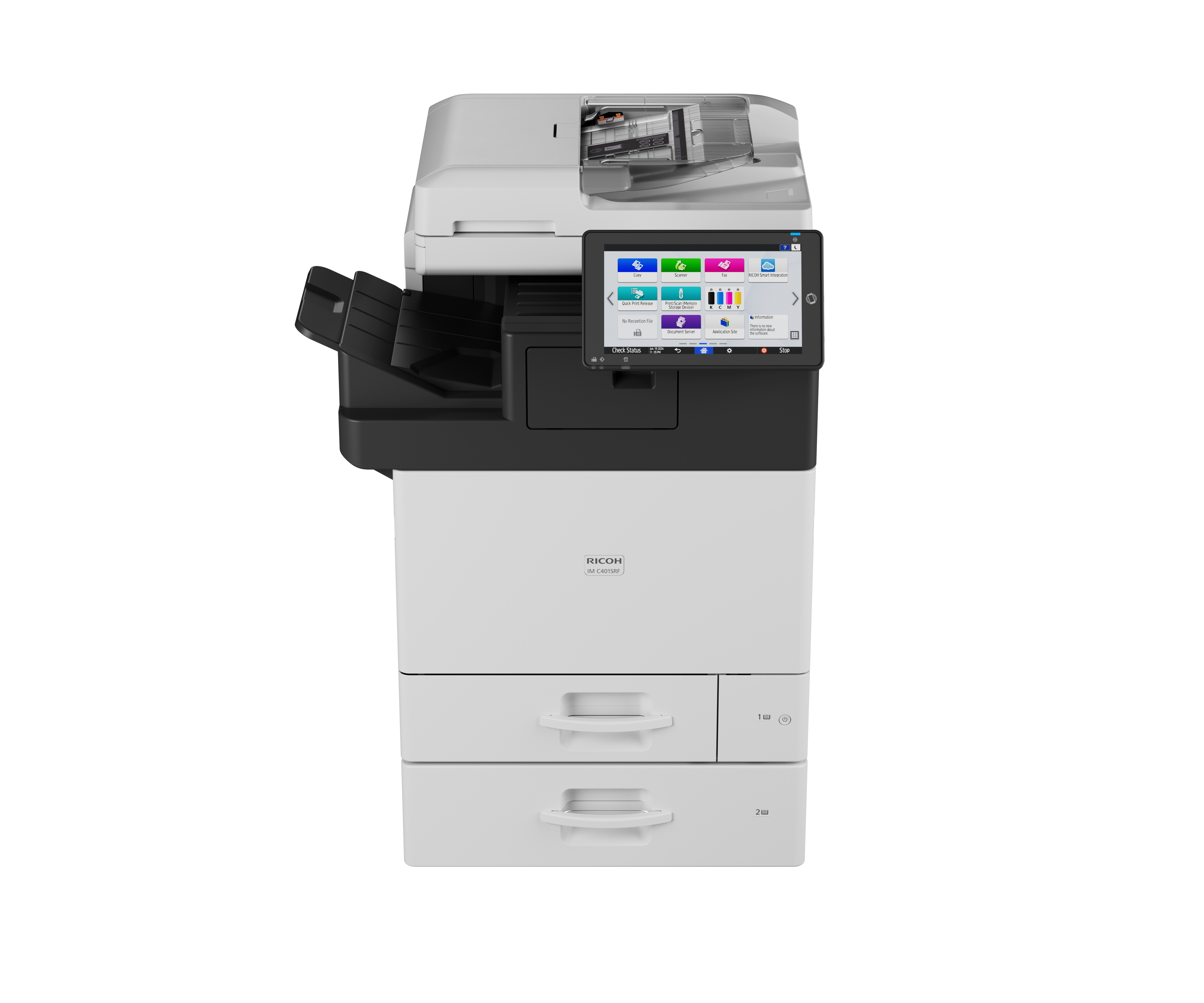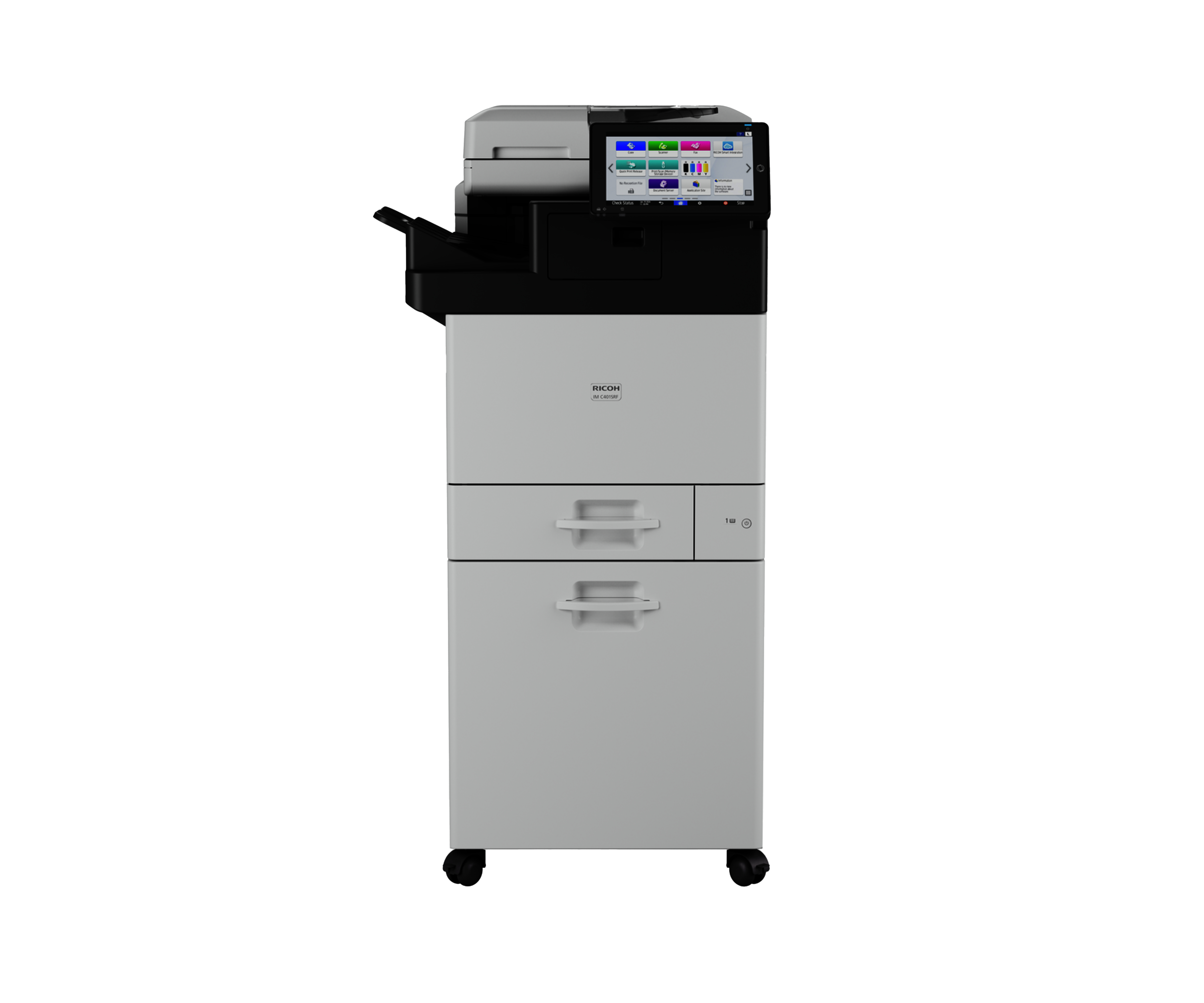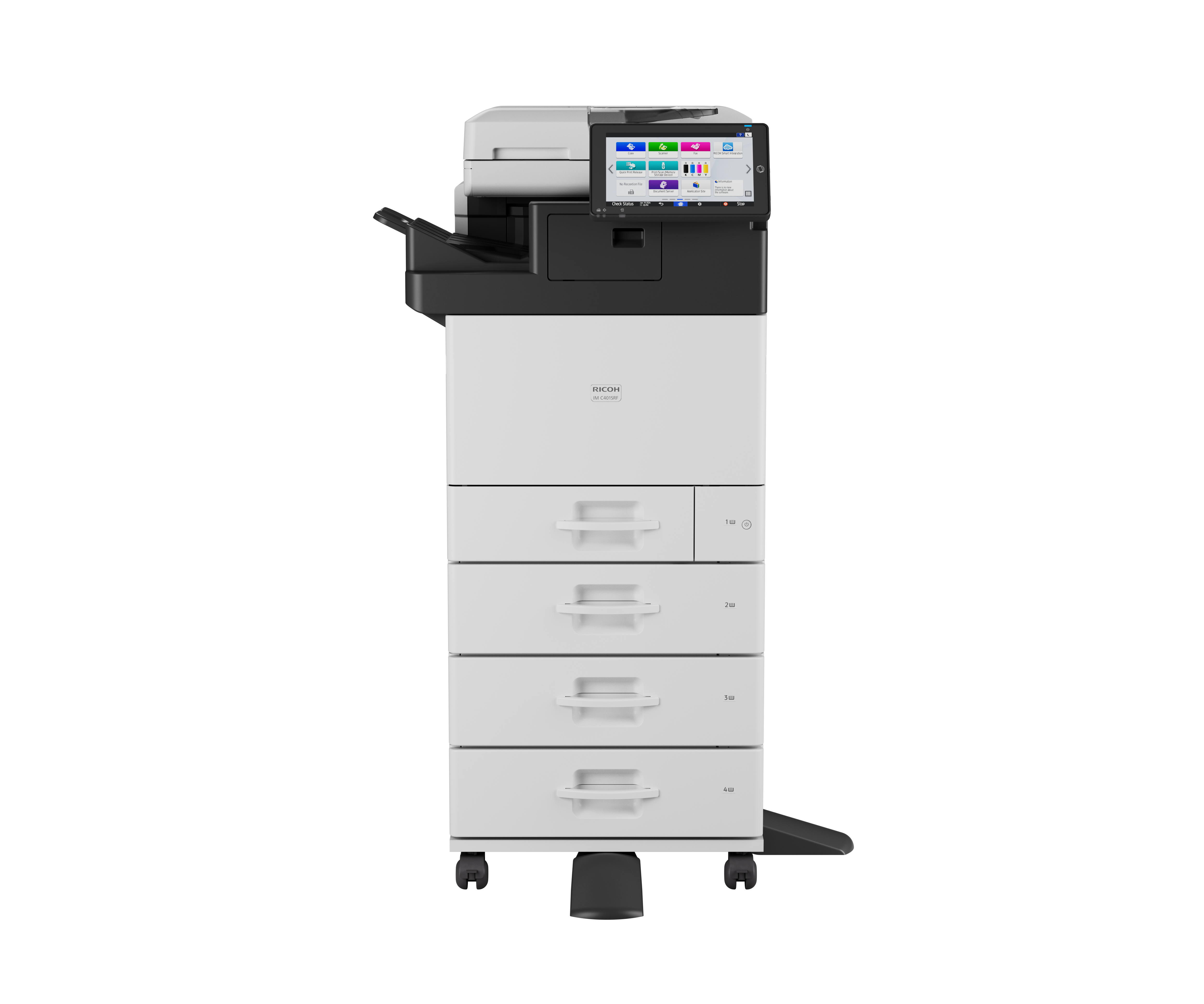 A IM C401SRF foi projetada para aumentar a produtividade através da sua velocidade, eficiência e design de fácil utilização. Capaz de imprimir a uma velocidade impressionante de 40 páginas por minuto, reduz significativamente os tempos de espera e mantém a fluidez dos fluxos de trabalho. Com uma capacidade de digitalização rápida de até 80 imagens por minuto (duplex), garante um processamento eficiente de documentos. Além disso, os 6 GB de RAM permitem a realização fluida de várias tarefas em simultâneo. Com a opção de agrafagem do finalizador interno, os utilizadores podem simplificar o manuseamento de documentos, enquanto a funcionalidade Wi-Fi integrada lhes permite imprimir e digitalizar sem fios a partir de qualquer local do escritório, melhorando a flexibilidade e a comodidade das operações diárias.